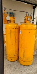 Liquid chlorine gas cylinders are typically made of mild steel and are used to store and transport chlorine in its liquid state, which is achieved by compressing and cooling the gas. These cylinders, often called ton containers, are designed to withstand the pressure of the liquefied gas.
