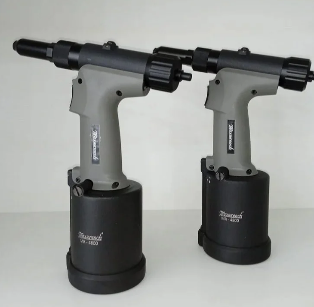 It combines air (pneumatic) power with hydraulic force to deliver high force with minimal manual effort, making it ideal for high-volume production and heavy-duty applications where a large number of rivets need to be installed quickly and efficiently.