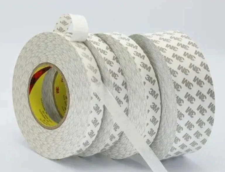 High performance double coated tissue tape made of conformable tissue carrier and high performance acrylic pressure sensitive adhesive. The high peel adhesion provides excellent adhesion to variety of surfaces.