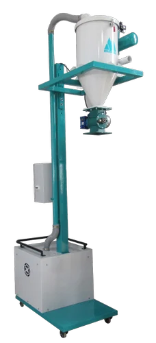 ALTOMECH portable vacuum conveyor are furnished with lift frames to accommodate varying discharge heights. Units are easily rolled to and positioned at the desired discharge point. Material can be drawn from a container, a feed bin or a pickup adapter under a bin or process vessel. Vacuum receiver with replaceable inlet assembly, easy access filter with pulse filter cleaning and full opening discharge valve. Mounted on the rolling frame is a control panel to handle the conveyor, discharge and filter clean functions of the system. Portable vacuum conveyor with wand piece to allow staff to suck powders and granules from the bags and lift them up into their equipment.