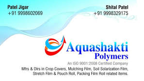 5 viewsEstablished in the year 2018, we “Aquashakti Polymers” are a prominent firm that is engaged in manufacturing and exporting a wide range of LD Roll, LDPE Packaging Roll, Mulch Film, Wrapping Film, LDPE Liner, LDPE Pallet Cover, Agriculture Crop Cover and LLDPE Stretch Film Roll etc. Located in Ahmedabad (Gujarat, India), we are a Proprietor firm and manufacture the offered products as per the set industry norms. Our valued clients can avail these products from us at reasonable rates. Under the headship of “Mr. Jigar Patel” (Proprietor), we have gained a remarkable and strong position in the market.