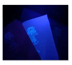 BLink311 is a unique pad printing and screen printing ink for pad printing tagless garment labels and screen printing decorative images on t-shirts and other apparel. The prints are invisible in sunlight or day-like artificial light, and visible in black light. BLink311 black light ink is flexible, soft hand (not noticeable on touch); it complies with apparel industry's wash tests (50 industrial washes) and complies with US and European consumer product standards. This pad printing and screen printing ink is capable of revolutionizing garment tracking and decoration.