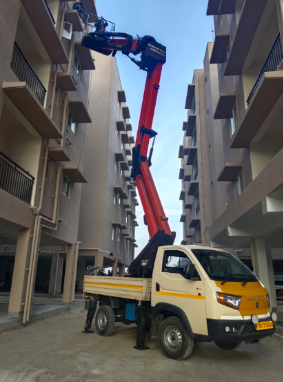 A truck-mounted boom lift, also known as a cherry picker, bucket truck, or man lift, is a mobile aerial work platform with an extendable arm attached to a heavy-duty truck chassis. This design allows the equipment to be easily transported to multiple job sites, providing workers with safe, elevated access for a variety of tasks.