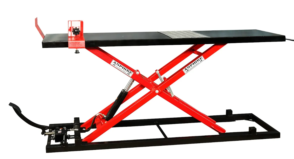 A two-wheeler lift is a specialized piece of equipment designed to lift and support motorcycles, scooters, or other two-wheeled vehicles, typically for maintenance, repairs, or storage. These lifts can be hydraulic or pneumatic, offering different ways to raise the vehicle and varying levels of stability.