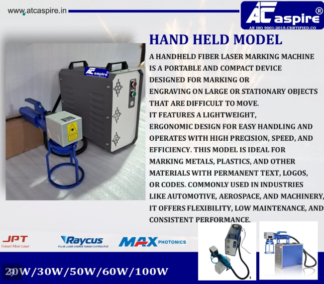 IT FEATURES A LIGHTWEIGHT, ERGONOMIC DESIGN FOR EASY HANDLING AND OPERATES WITH HIGH PRECISION, SPEED, AND EFFICIENCY. THIS MODEL IS IDEAL FOR MARKING METALS, PLASTICS, AND OTHER MATERIALS WITH PERMANENT TEXT, LOGOS, OR CODES. COMMONLY USED IN INDUSTRIES LIKE AUTOMOTIVE, AEROSPACE, AND MACHINERY IT OFFERS FLEXIBILITY, LOW MAINTENANCE, AND CONSISTENT PERFORMANCE.