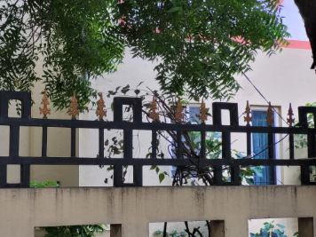 A metal grill installed above compound walls to provide additional security, ventilation, and aesthetic appeal.
