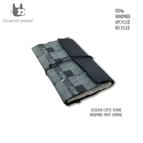 Designer Grey Coptic Bound Handmade Paper Book With Geometric Sky Blue