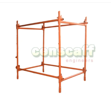 Made out of 40 mm Medium Duty NEZONE ERW Tubes Conforming IS 1239 grade YST 22 with make of wall thickness of 2.9 mm, two verticals of 40mm ID tube with sockets of 50mm ID tube at the bottom & one Horizontal cross bar of 40mm ID Tube with lugs welded on verticals provided positive support to horizontal ‘C’clamp to fix ledger tube for connecting the units and one coat of Blue Primer
