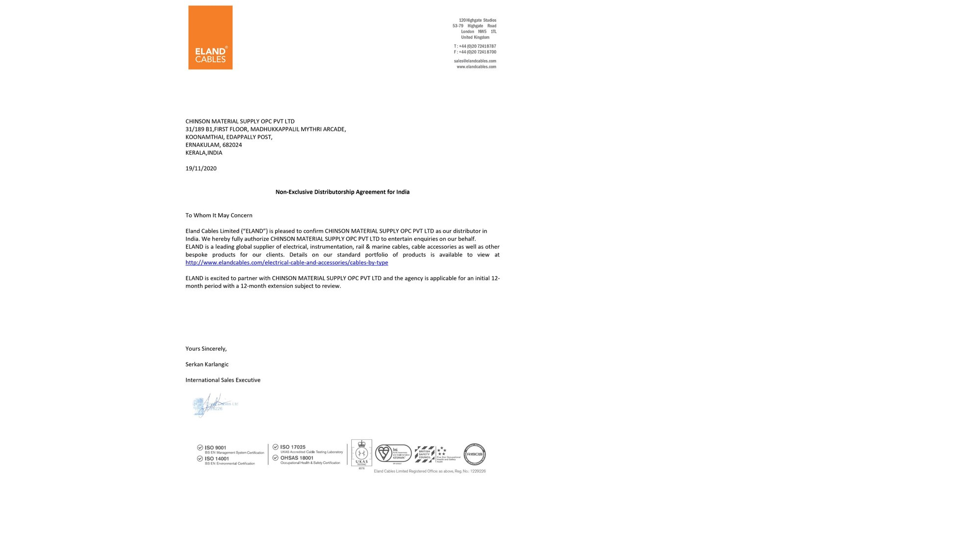 Chinson Material Supply(Opc) Private Limited