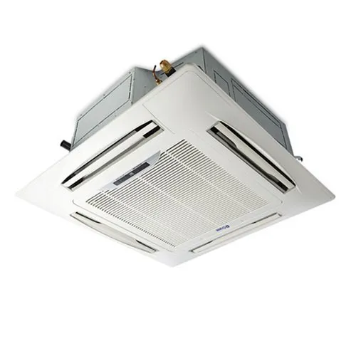 A 4-way ceiling mounted cassette is an indoor unit for air conditioning systems, designed to be installed in the ceiling and distribute cool or warm air in four directions. These units are particularly suited for large, open spaces like offices, hospitals, and retail spaces where even temperature distribution is crucial.