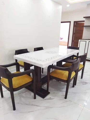 Rectangular Rosewood Marble Dining Table, 6 Seater