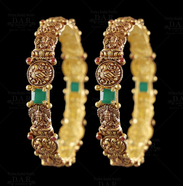 Our Gold Antique Bangles amplify the allure of tradition, each piece bearing the mark of timeless elegance and historical heritage. Crafted with meticulous artistry, these bangles enrich your style, infusing it with grace and sophistication. Antique pieces, by their nature, are a rarity, offering an encounter with unique designs that decorate your wrists with classic charm and stateliness. Wearing an antique bangle. it's a jouney into the rich heritage of craftsmanship and cultural refinement. The appeal of these pieces lies in their exclusivity; they're not mass-produced but individually crafted, ensuring you discover a treasure that's as unique as you are. Embracing an antique bangle isn't merely accessorizing; it's cherishing a piece of history that speaks volumes about refined taste and an appreciation for the timeless beauty of traditional jewellery.