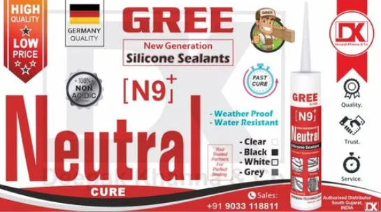 Neutral Silicone Sealants 100% Non Acidic German Technology Not Made in China Fast Cure Available in Clear, Black, White & Grey Colour Also Suitable for Glass, Mirror, ACP, etc.