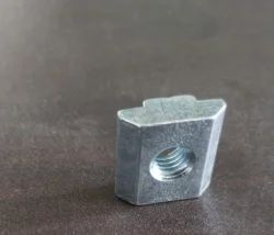 he standard slide-in T-nut is a fastening option that loads from the profile ends. It is a strong, durable connection that is available with options in size, thread, and finish. The standard slide-in T-nut is a fastening option that loads from the profile ends.