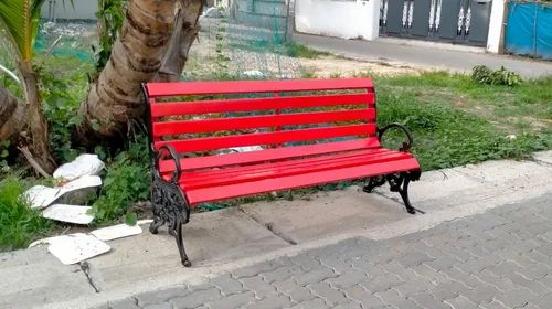 Antique With Arm Rest Cast Iron Leg Frp Strip Garden Bench, With Back, Size/Dimension: 1.5 M. FRP Strip Cast Iron Leg Garden Bench Spec: 1.5 m length Eight strip Lion head Leg ,Out door and Indoor useItem