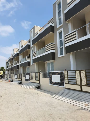 A row house can be defined as a single-family dwelling unit arranged in a row with a minimum of three dwelling units attached by a common wall with the only front, rear and interior open spaces. The first and the last of these houses are usually more extensive than the middle ones