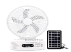 It consists of a solar panel that charges a rechargeable battery during the day. The battery then powers a fan motor through a voltage regulator circuit. The fan can also be charged through a household power supply.