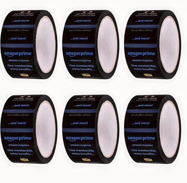 Amazon Prime Printed TapeEnhance your packaging with our Amazon Prime Printed Tape, designed for durability and ease of use. Perfect for e-commerce businesses and shipping needs, this high-quality tape features a bold, recognizable Prime logo to ensure your packages stand out.Key Features:High Adhesion: Sticks securely to a variety of surfaces, including cardboard and plastic.Durable Construction: Made from strong, tear-resistant materials to keep your packages intact during transit.Easy to Use: Comes with a convenient dispenser for quick application.Professional Look: Clearly displays the Amazon Prime logo for brand recognition and a polished appearance. amazon pime pinted high thickness.