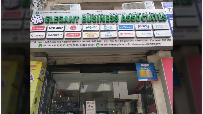Elegant Business Associates in Chennai is one of the leading businesses in the Sanitaryware , Bathroom Fitting ,Sanitaryware - Hindware , Valve, Commode ,Wash Basin , Tap , Bathroom Fitting Wholesalers and much more . Location and Overview : Established in the year 2003 , Elegant Business Associates in Flower Bazaar , Chennai is a top player in the category Valve Dealers in the Chennai . This well - known establishment acts as a one - stop destination servicing customers both local and from other parts of Chennai . Over the course of its journey , this business has established a firm foothold in it's industry .