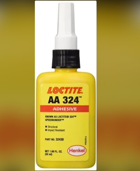 Loctite 324 Adhesives is a transparent, light amber, urethane methacrylate ester acrylic structural adhesive liquid for bonding flat parts together. It is specially suitable for joining dissimilar materials, e.g. ferrite to plated materials in electric motors, loudspeakers, etc. It is specifically formulated for toughness and impact strength and cures with the aid of an activator.