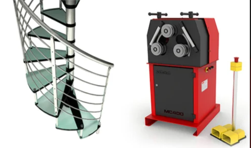 Profile former MC400 Nargesa, is made of mechanized and weldes Steel sheet. Unlike others, this one’s not made of melting. It has been conceived for work pipes and profiles. It is ideal for making spiral stairs, to bend pipes in spiral shapes, flanges for pipes, greenhouses, handrails, tables, chairs, doors, windows.