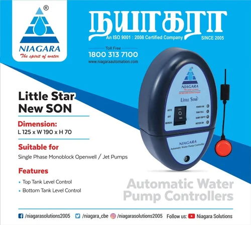 NIAGARA Little Star automatic water level controller with indicator will automatically switch ON and automatically switch OFF the motor pump::AUTO ON when tank level is low and AUTO OFF when tank is full::Has 4 level LED indications for the tank 25%, 50%, 75% and 100%:: It is both controller and indicator.