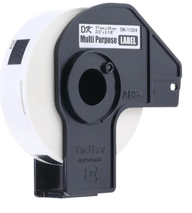 Genuine Brother DK-11204 Label Roll, Black on White, 17mm x 54mm, DK Rolls Die-Cut Label Options