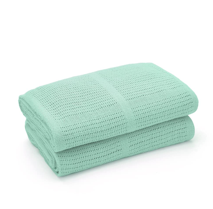 Cotton baby cellular Blanket Pram Cot Bed Moses Basket Crib Mint Green