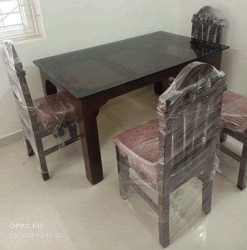4 Seater Dark Brown Wooden Dining Table Chair