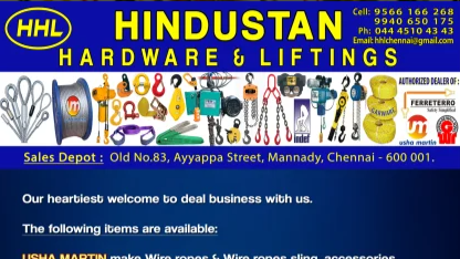 Established in the year 2015 at Chennai, Tamil Nadu, India, we "Hindustan Hardware & Liftings" are Individual Proprietor based firm, involved as the Wholesaler of Lifting Slings, Lifting Clamps and much more. All our products are getting widely acclaimed among the large clientele for their exclusive designs, superior quality, and reliability.