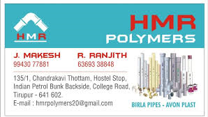 2 viewsHMR Polymers provides you the best range of pvc pipe, fiber optic cable, plastic pipes, hose pipe, stainless steel door & pipe fittings with effective & timely delivery. Leading of 110 Mm Pvc Pipes, Pvc Pipes and Astral Pipes from Tiruppur. Prominent & Leading from Tiruppur, we offer Fiber Optic Cable, Fiber Optic Connectors and Optical Connector. Offering you a complete choice of products which include Water Tank Pipe and Industrial Plastic Pipes. of a wide range of products which include Pipe and Plastic Hose Pipe. We are a leading of Stainless Steel Doors and Steel Doors from Tiruppur, India. Our range of products include Plastic Fittings and Plastic Joint. of a wide range of products which include Clear Plastic Tube. Offering you a complete choice of products which include Iron Rolling Shutter. Our product range includes a wide range of Steel Girder Bridge. Leading of Wires Cables from Tiruppur.