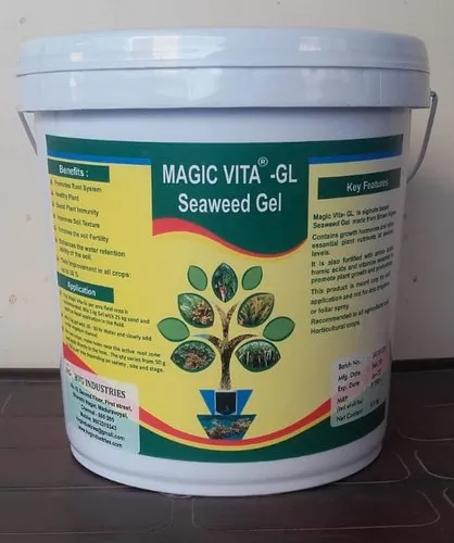 Magic Vita- GL is alginate based Seaweed Gel made from Brown Algae.- Contains growth hormones and other essential plant nutrients at desired levels. It is also fortified with amino acids, humic acids and vitamins essential to promote plant growth and productivity.