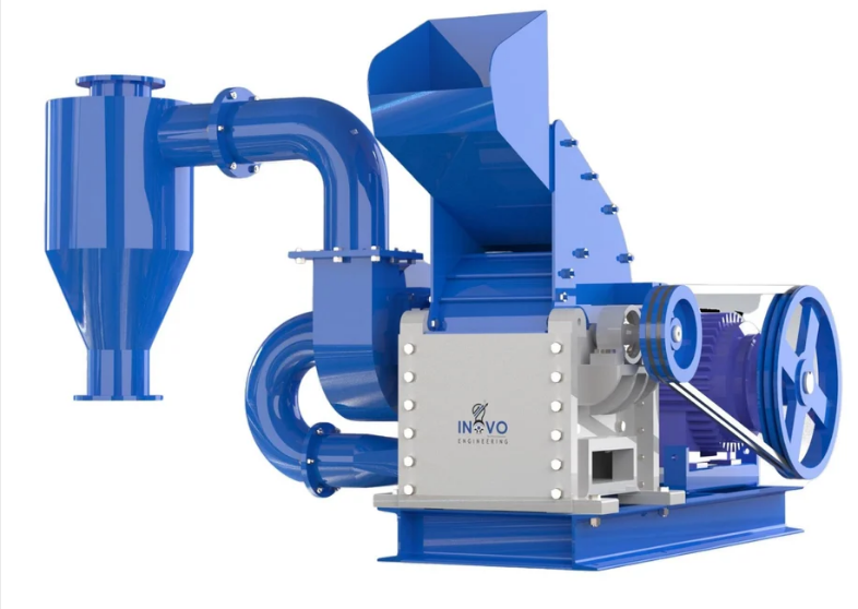 Inovo's Pin mill is a type of grinding mill that uses closely spaced, multi-row pins as the grinding mechanism. It’s commonly used in various industries, such as food and pharmaceuticals, to reduce particle size by shearing and impacting the material. Pins rotate at high speed, effectively breaking down solids into finer particles. This type of mill is often used for materials that are relatively friable or easily reduced in size. Inovo hammer mill is widely used in recycling process of plastic and food processing. Inovo hammer mill is manufactures with high-graded raw material and latest technology of grinding process. It’s very easy to use, less power consumption and low maintenance required. It is available in different model size as per the grinding or rotor diameter of machine.