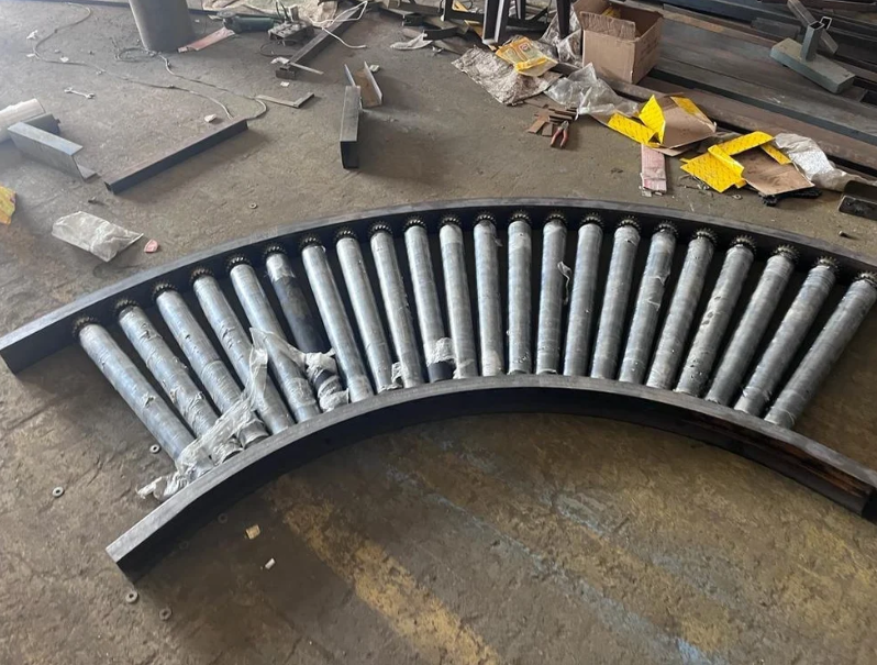 A 90-degree curved roller conveyor is a type of material handling equipment designed to facilitate the smooth and controlled flow of goods around a corner or curve in a conveyor system. This type of conveyor is commonly used in warehouses, distribution centers, manufacturing facilities, and other environments where the efficient movement of products is essential. Here are the key features and components of a 90-degree curved roller conveyor: