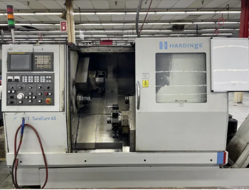 2007Hardinge Quest TurnMill with 65mm, Front and Back spindle, 2 nos Live Tool Turrets, one rurret has Y axis, bar feeder, chip conveyor, suitable for mass production of bar parts. CNC TURNMILL WITH TWIN TURRET 2007 Hardinge Quest 65