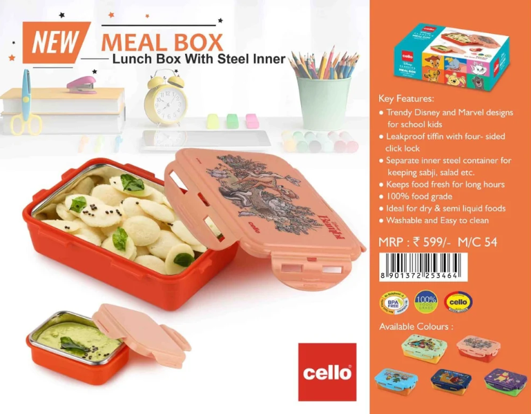 Cello Meal Box kids lunch box with inner steel