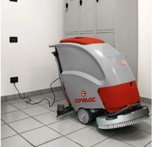 L20 B-E is a walk-behind scrubbing machine available in electric or battery versions, with 1 disc brush of 51 cm working width. L20 B can work for up to 1 hour over a surface of 2000 sq.m. with a single tank of detergent solution. Up to 2 hours autonomy with a single energy charge. L20 B-E is fitted with a new squeegee in a reinforced (Patent Pending) plastic material that is corrosion resistant. The automatic uncoupling system protects the squeegee when accidentally impacted.