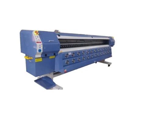 India's Most Economical Solvent Printing Machine powered with Japanese Konica Minolta 512 / 42 PL Print heads with a production capacity of almost 500 Sq.ft/ hr.