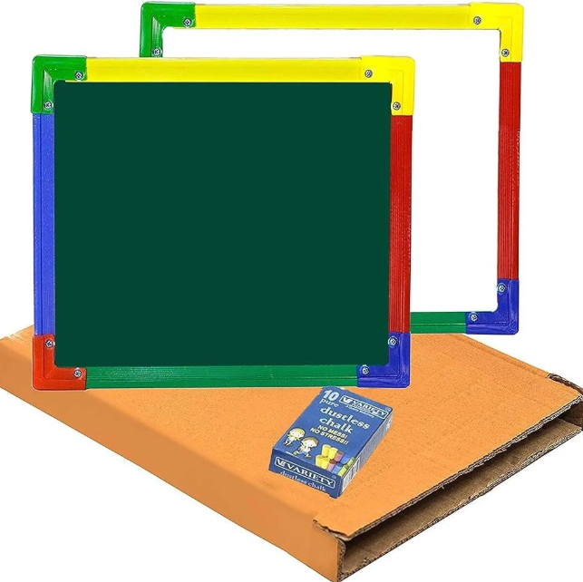 Two in one Writing Boards:- One side chalk and one side marker, (In this set 1Sqft Board+Duster+Marker+Chalk