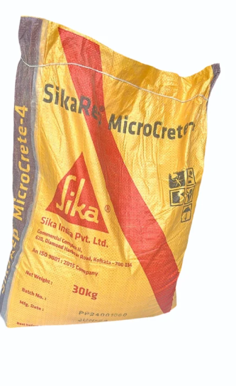 Gray SikaRep Microcrete-4 is a high-performance, factory-designed microconcrete for deep concrete repairs and structural strengthening of elements like bridges, tunnels, columns, and beams. It's a ready-to-use, non-shrink, cementitious material that is pourable, pumpable, and does not require vibration, providing excellent bond and durability to the repaired structure.
