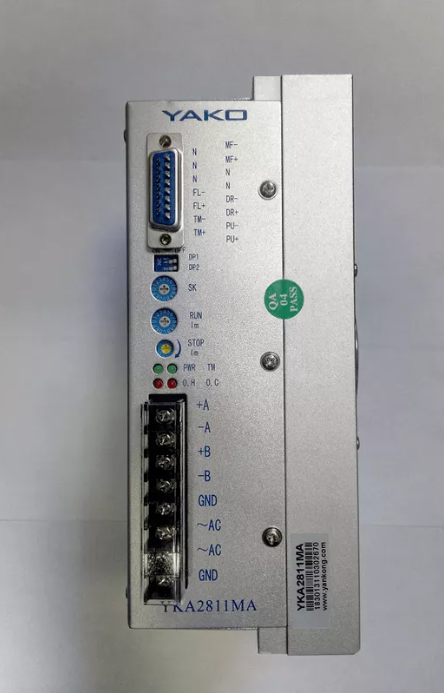 YKA2811MA is identical-angle constant-torque microstep drive with working voltage AC60~110V. It’s designed for various models of two phase 86~130mm (NEMA 34~50) hybrid stepper motors which current are below 8A.