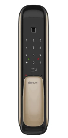 Up to 100 smart card can be registered. Physical keys, Two are provided. Normal Voltage, DC 6V, AA Alkaline (6V) Solity Digital Push Pull Door Lock GSP-1000BK Fast & Accurate fingerprint recognition (0.9 sec) Setting and updating passcode. RFID card access