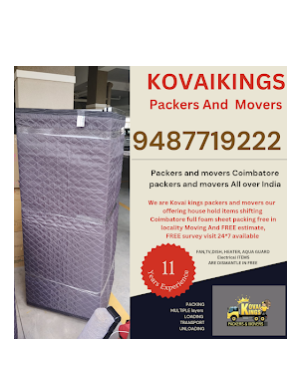 "Kovai Kings Packers & movers in Coimbatore is engaged in offering Packers and movers services, home to home packers and movers, office relocations, corporate relocations from Coimbatore to all over India service. Established in 2013, Kovai Kings Packers and Movers is your trusted companion for any relocation need, whether residential or commercial. Our team of expert packers and movers ensures a seamless transition by handling every detail from start to finish efficiently and securely. With a commitment to excellence and satisfaction guaranteed, Kovai Kings has consistently excelled in providing top-notch relocation services across Coimbatore and beyond."