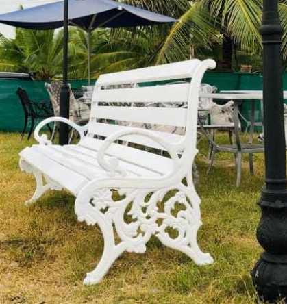 A cast iron bench with FRP (Fiber-Reinforced Plastic) slats offers a combination of heavy-duty durability and lightweight, weatherproof seating. The cast iron legs provide a sturdy, heavy base for wind resistance and stability, while the FRP slats offer a comfortable, termite-proof, and washable seating surface. This hybrid construction makes it a low-maintenance, long-lasting solution for gardens, parks, patios, and balconies.