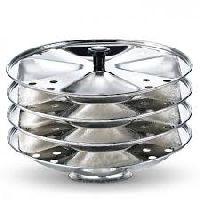 The ideal solution is to have an Idli Maker at home. Product Details: The Idli Cooker features a lid and a flat bottom. It comes with three plates and a stand to hold the idli dough, and it can prepare 17 Idlis at once.
