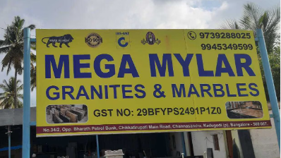 MEGA MYLAR GRANITES & MARBLES established itself as a Sole Proprietorship based firm in the year 2012. We are located our unit at Bengaluru, Karnataka (India). Since our formation, we are engaged in this industry as a Manufacturer, Trader and Wholesaler of wide range of tile and stones which are highly demanded in the market owing to their smooth finishing, high quality and ergonomic designs. Our huge array of products comprises of Granite Slab, Granite Tile, Marble Tile and many more. All the products are extremely cost effective and affordable to find the client’s instant acceptance. By using advanced machinery, our professionals process the offered products as per the industry set norms and regulations. Our product ranges are completely based on customer satisfaction with a commitment to the further development of our working practices. We finely processed and test our entire range of products before the final delivery which ensure their supreme quality. With ethical business policies and transparent business dealings, we are constantly increasing the list of our satisfied clients across the nation.