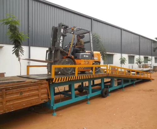Truck loading ramp is usually used to load & unload the cargo from the ground directly into the container or trailer box .