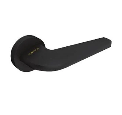 Brass Lever Handle on round rose with euro profile cylinder escutcheon. BLACK MATT