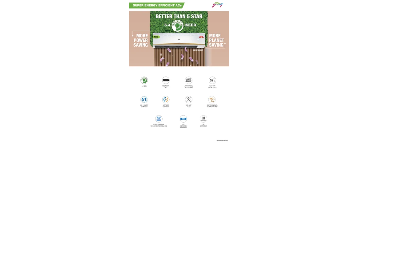 With Nano-Coated anti-viral filter that disinfects 99.9%+ viral particle, eco- friendly R32 refrigerant technology. With 100% copper condenser, anti-corrosive blue fin coating, 5-year compressor warranty, this R32 refrigerant based 3-star, 1.5 TR. Air Conditioner is powerful, environment friendly and durable.