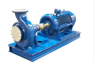 An end suction pump is a type of centrifugal pump that has a fluid inlet at one end and a fluid outlet at the other end. They are also called straight pumps or transfer pumps